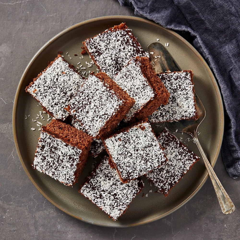 Chokladrutor med glasyr och kokos