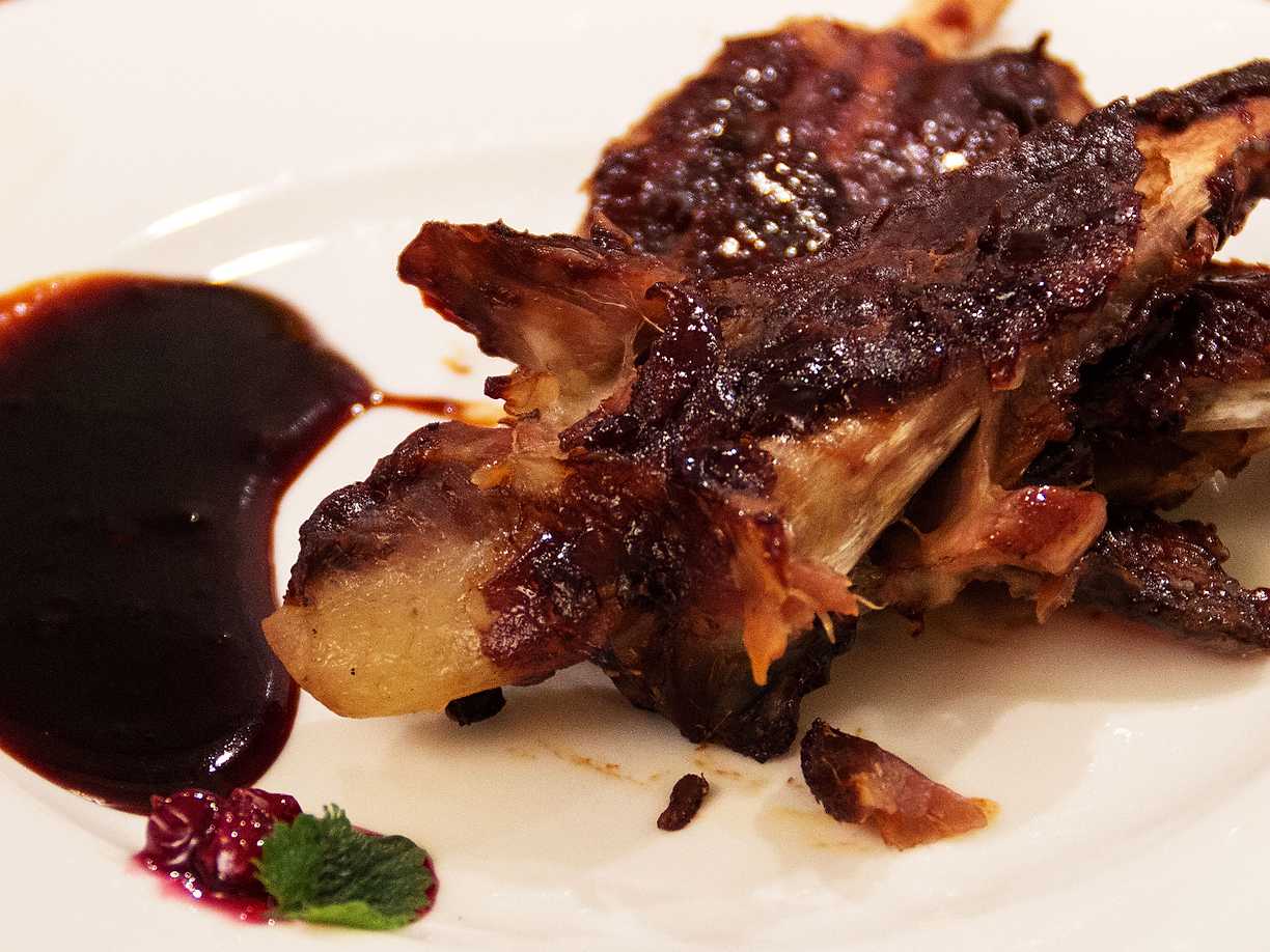 Revbensspjäll med glaze och lingonsylt