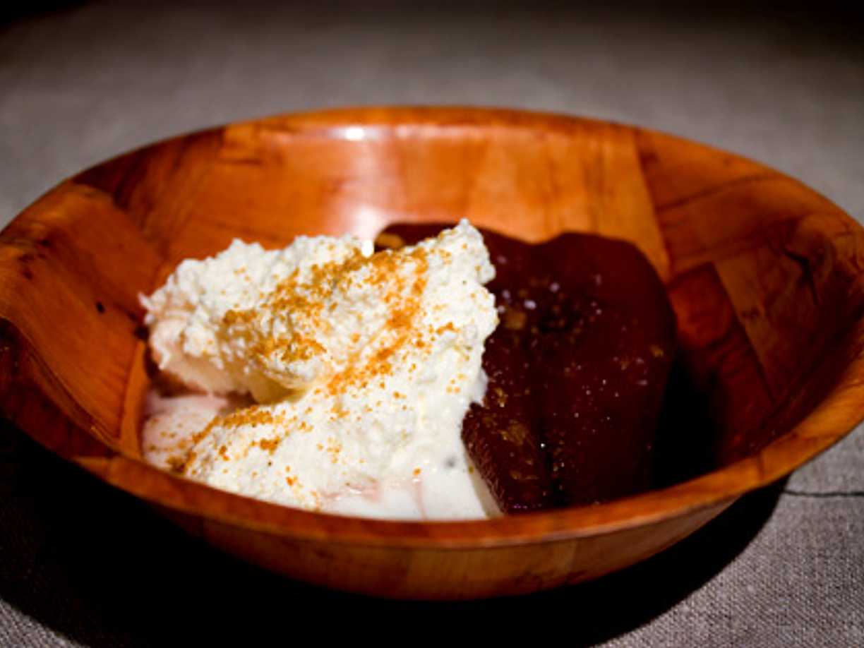 Saffranspannacotta med lingon, glögg och rosèpeppar