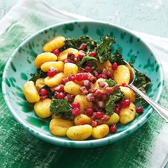 Gnocchi med bacon- och pinjeströssel