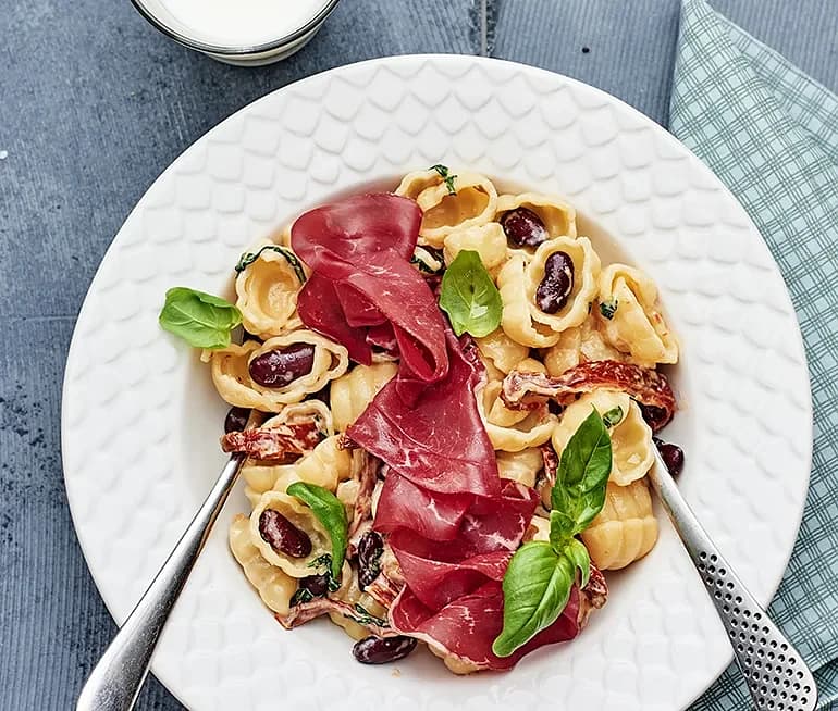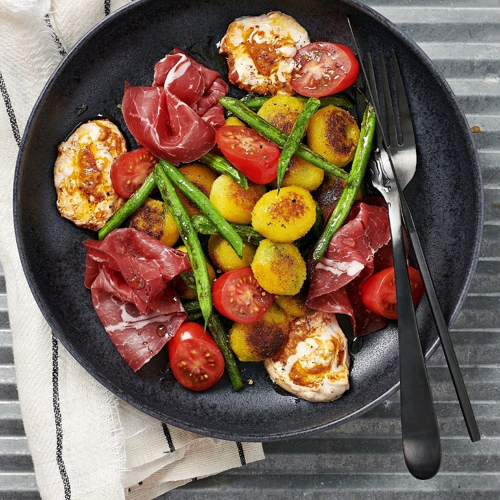 Potatisgnocchi med bresaola och bönor