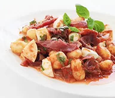 Gnocchi med bresaola och mozzarella i tomatsås