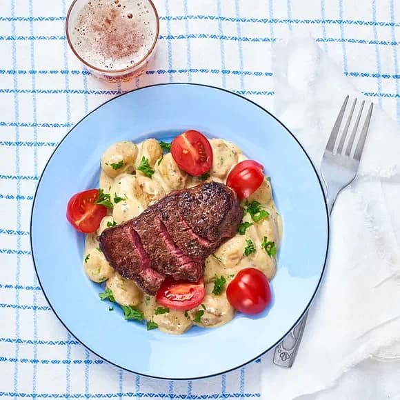 Entrecôte med smörstekt gnocchi och snabb bearnaisesås