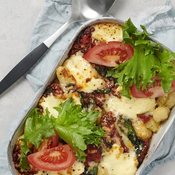 Gratinerad gnocchi med linser och spenat