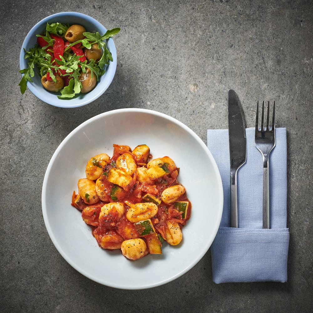 Gnocchi alla sorrentina med sallad