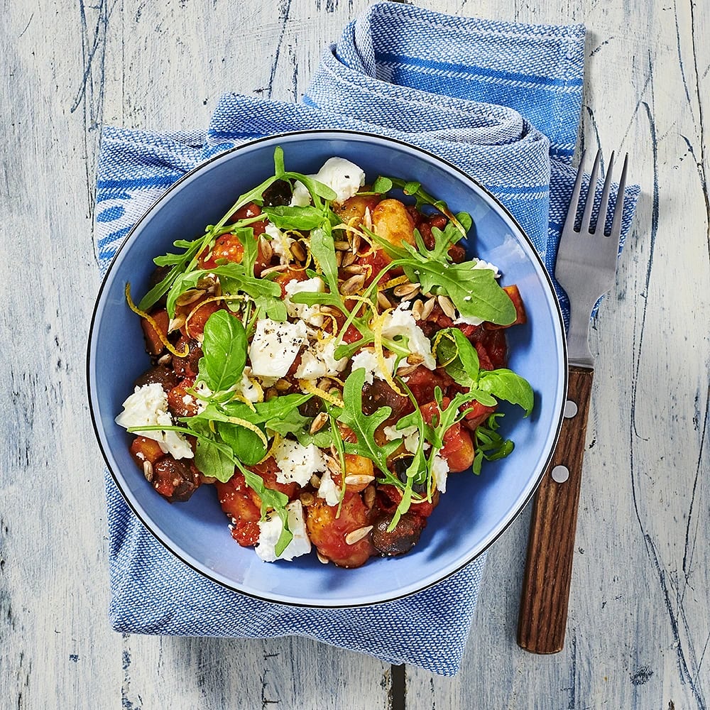 Gnocchi med rostade grönsaker och bönor