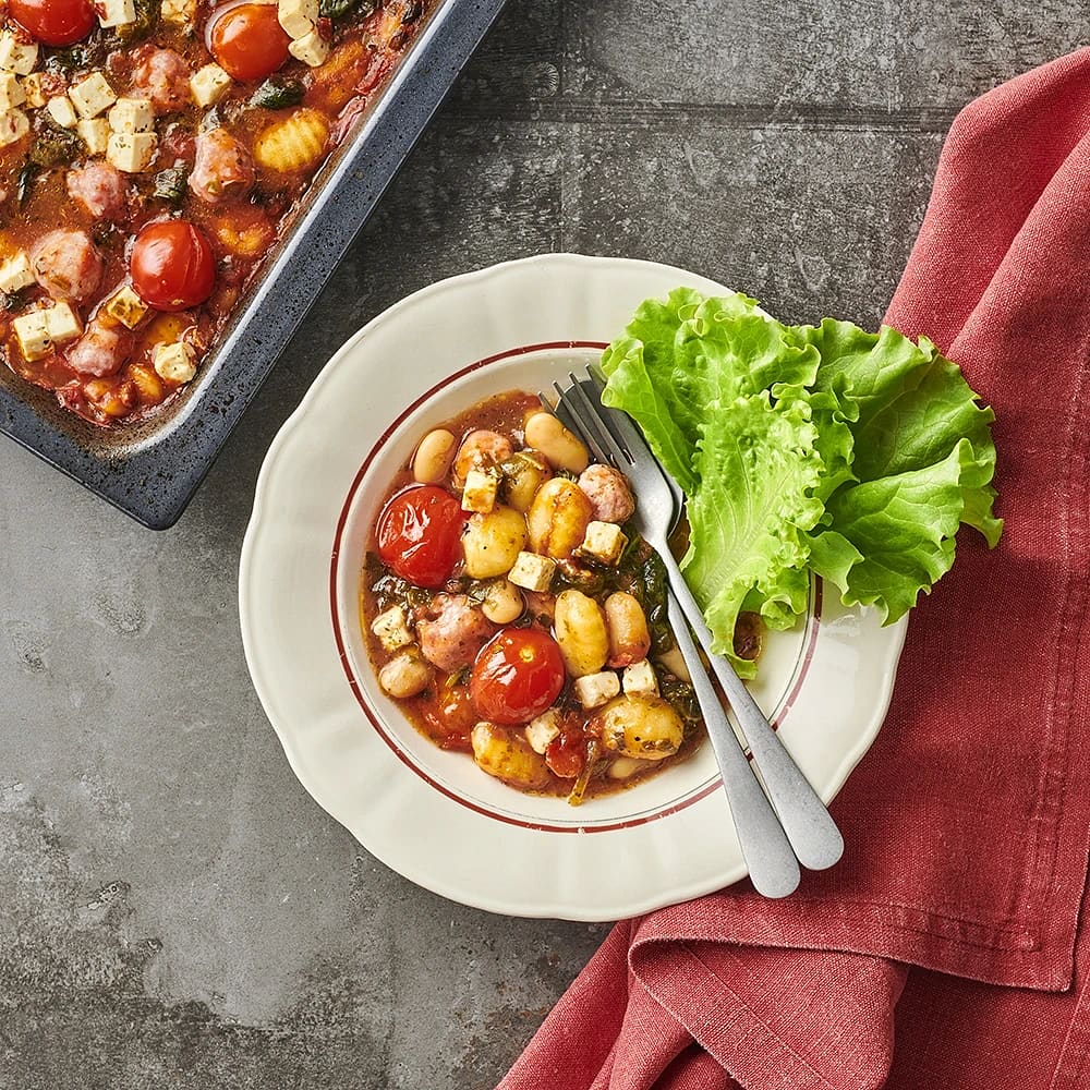 Gnocchi med romanticatomater, salsiccia och spenat
