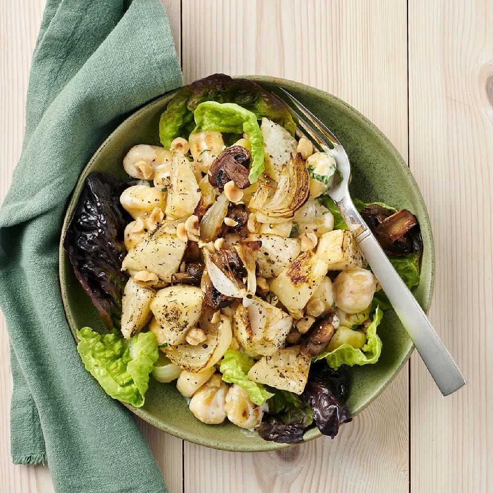 Rostad rotselleri med svamp och gnocchi