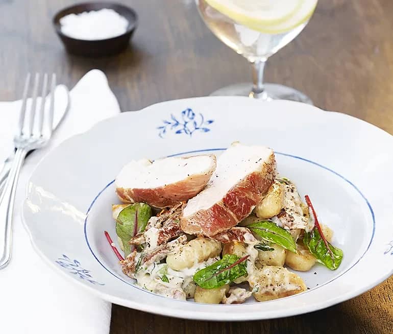 Prosciuttolindad kycklingfilé med krämig gnocchi