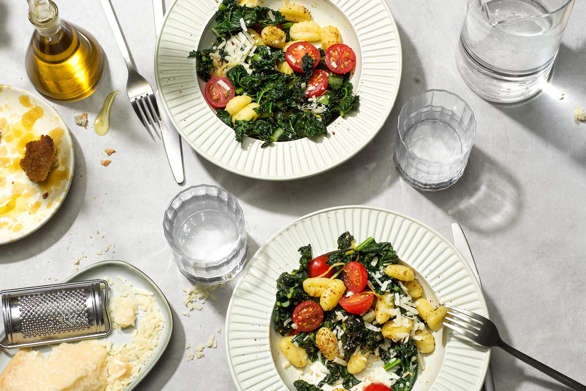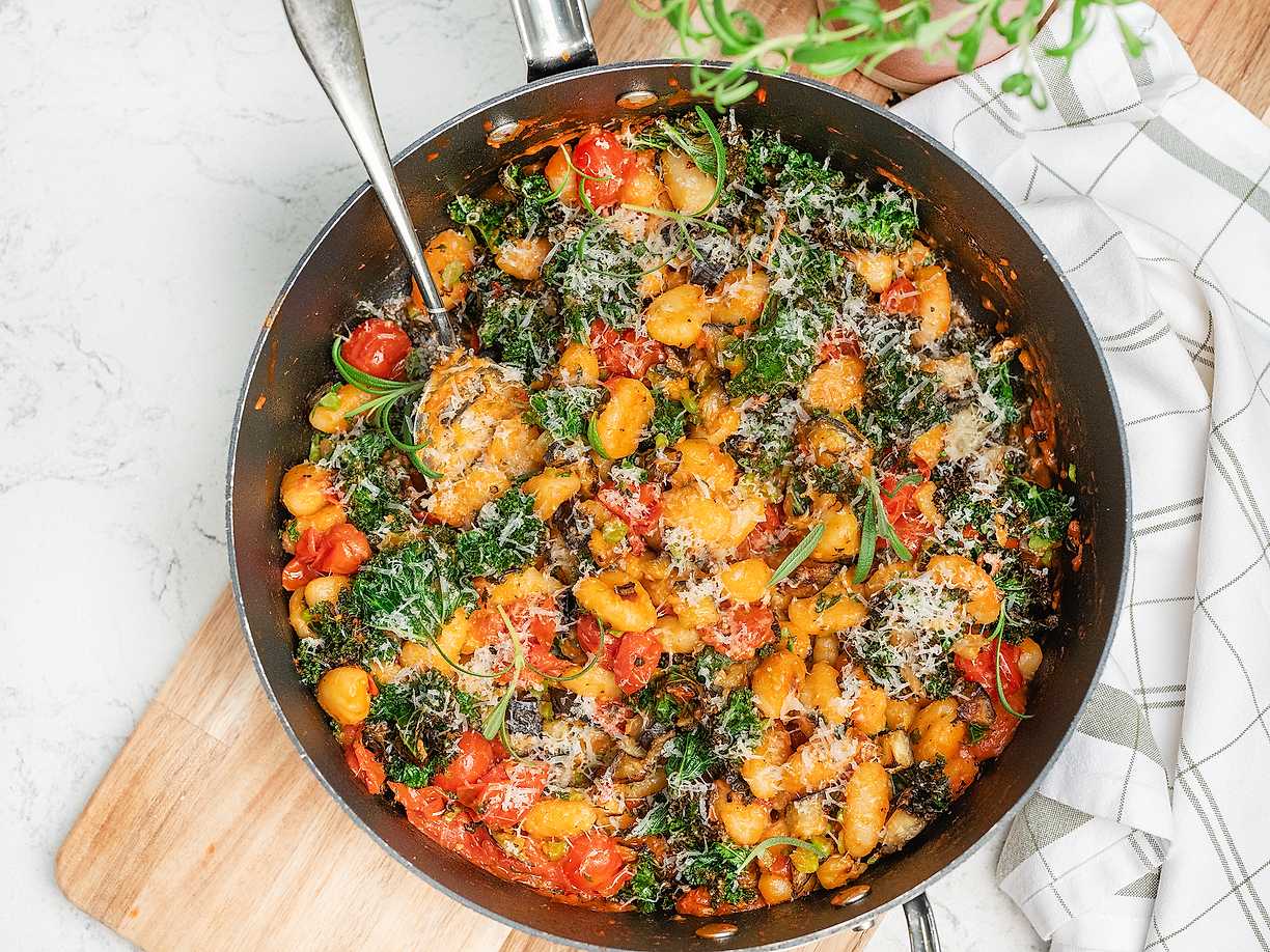 Gnocchi al pomodoro med svartpeppar och grönkål