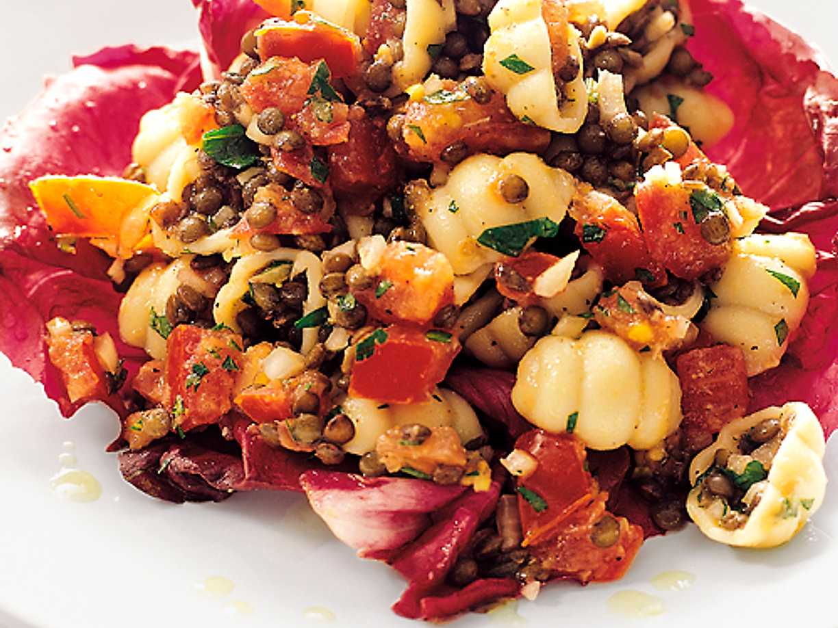 Gnocchi med linser och tomat i parmesanolja