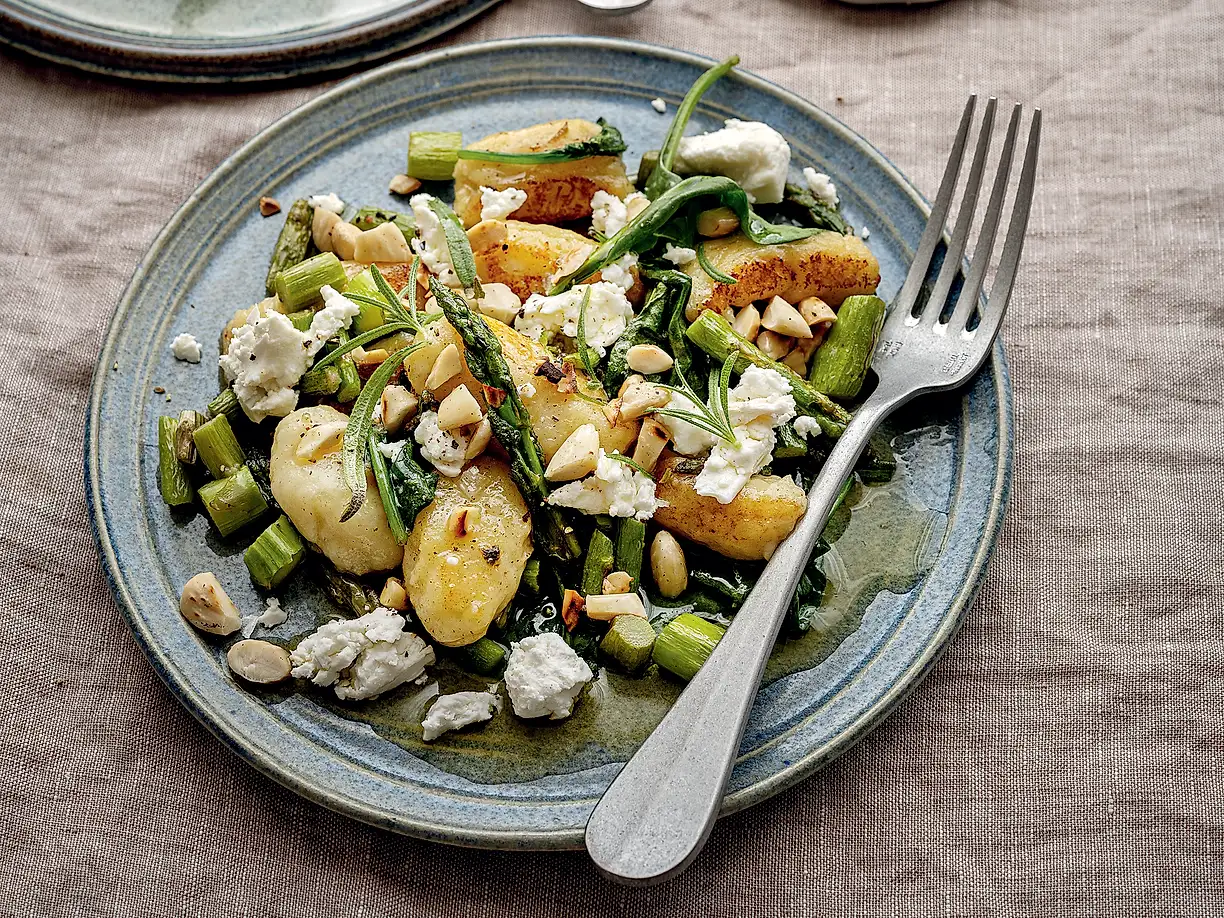 Gnocchi med sparris och brynt hasselnötssmör