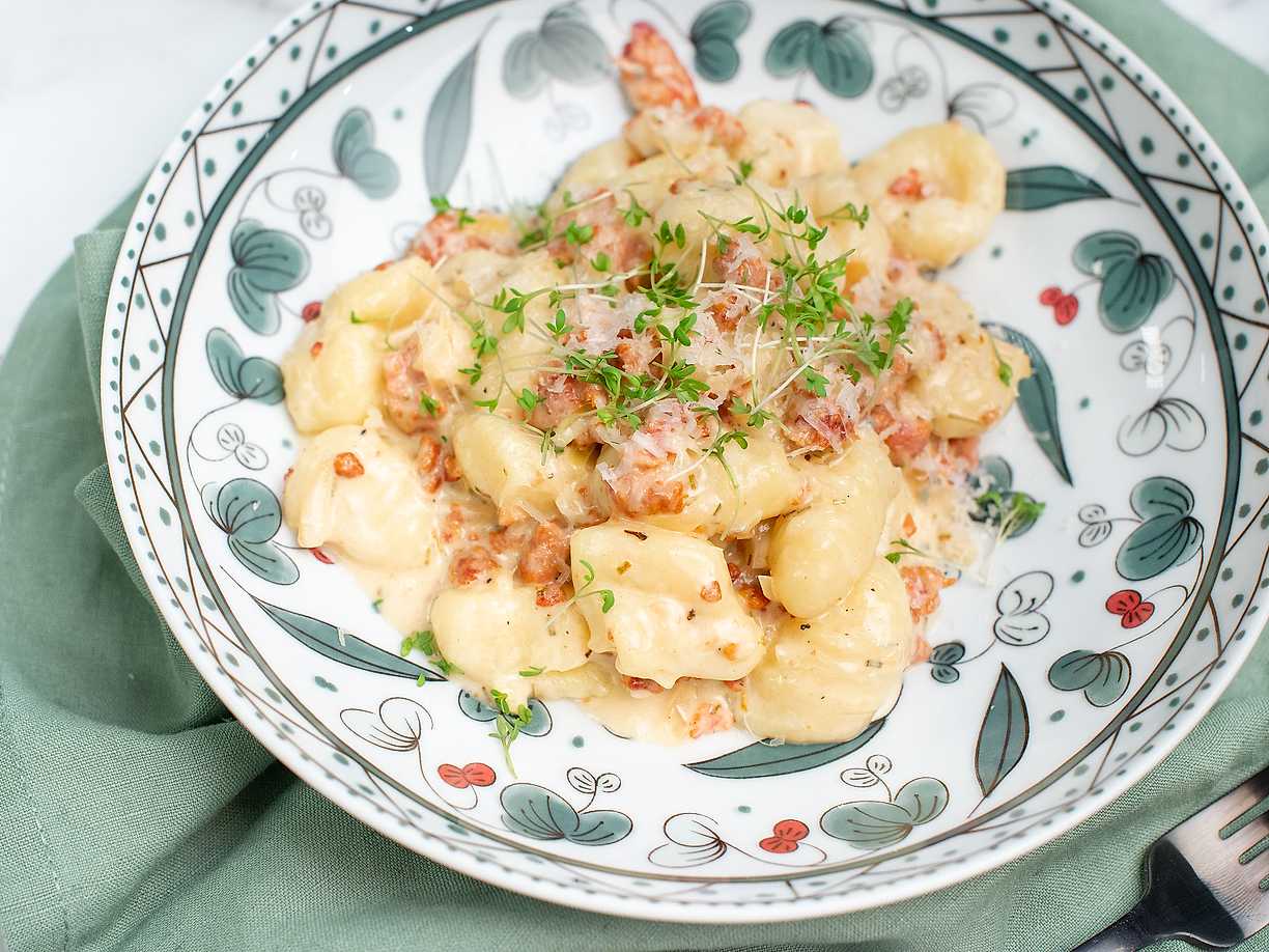 Gnocchi med bacon, kryddpeppar och lingon