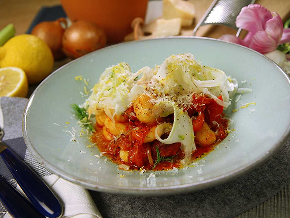 Gnocchi i zucchini- och tomatsås