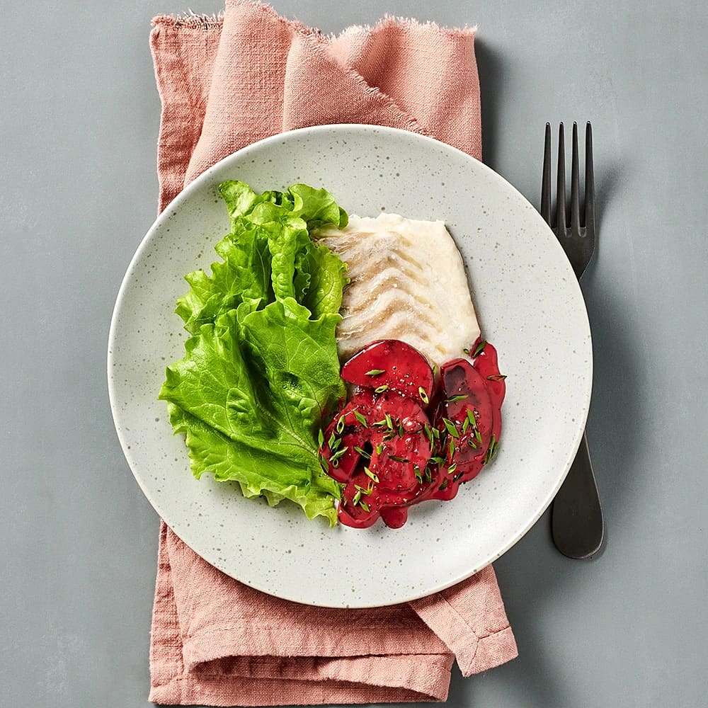 Torskrygg med gräddkokta primörer och baconströssel (LCHF)
