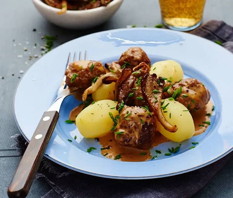 Lammlever med lök- och gräddsås
