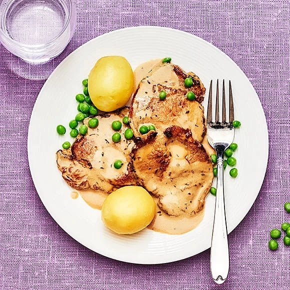 Tunn kotlett med gräddsås
