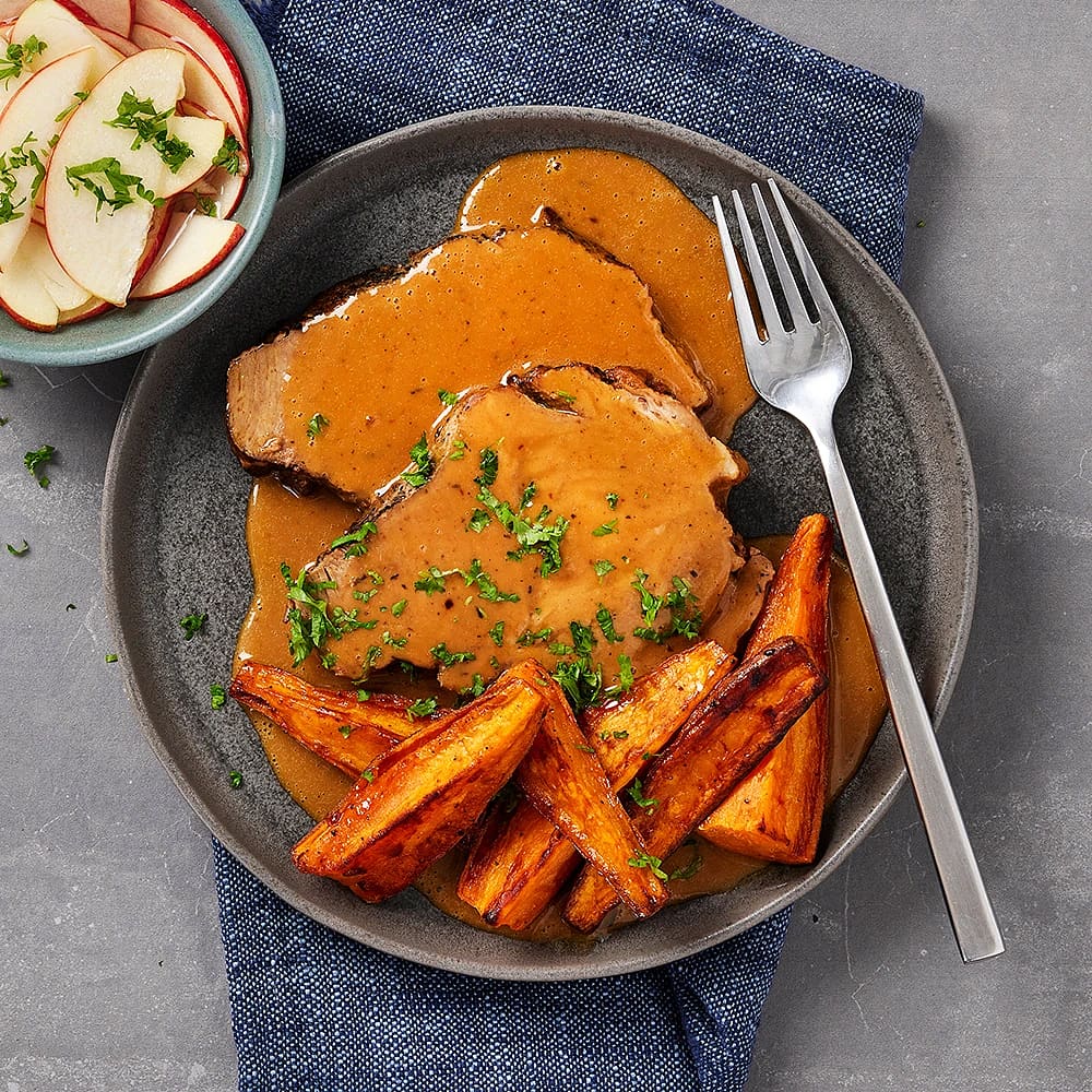 Långbakad fläskkarré med gräddsås