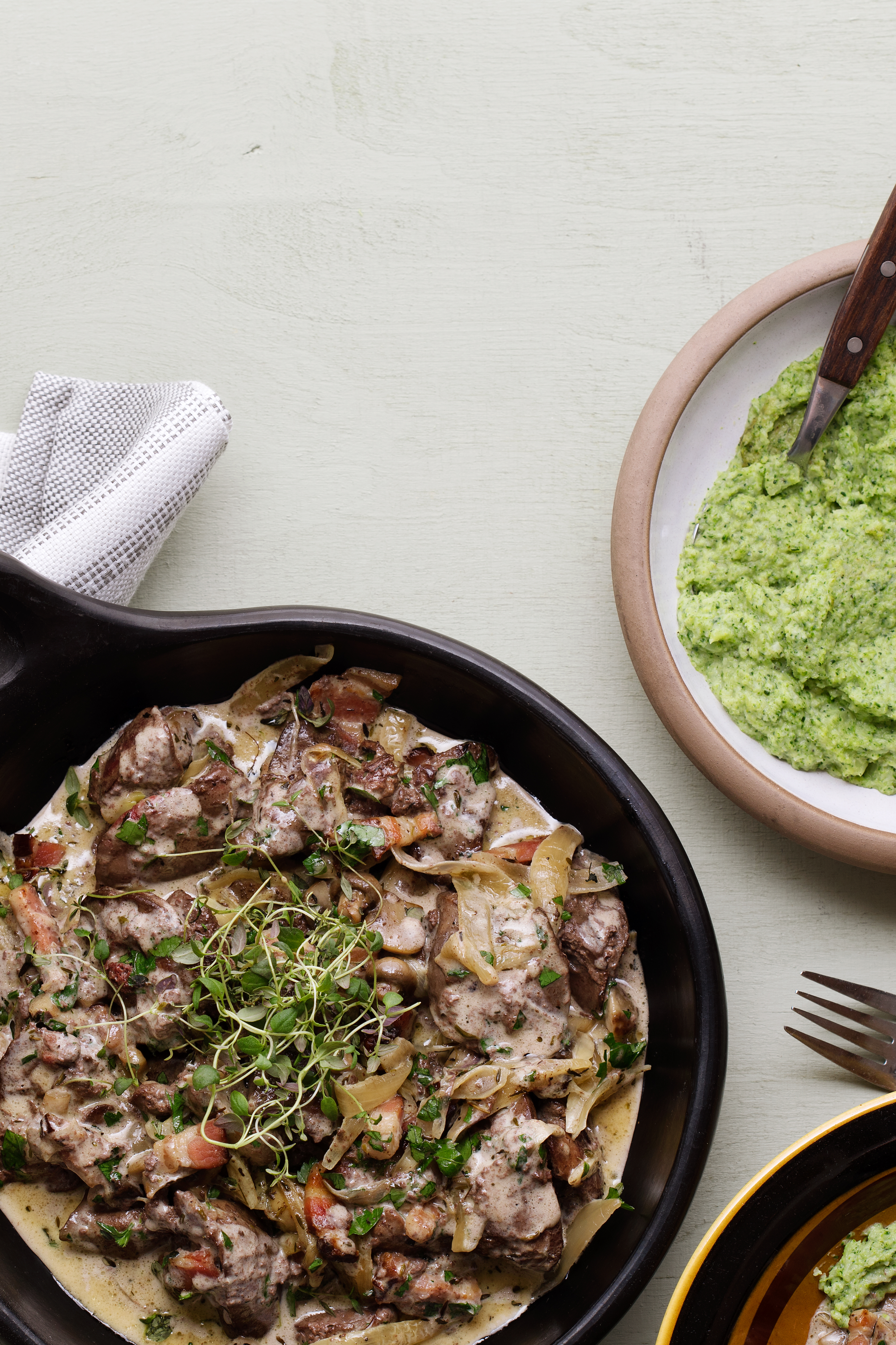 Kycklinglever i gräddsås med broccolimos