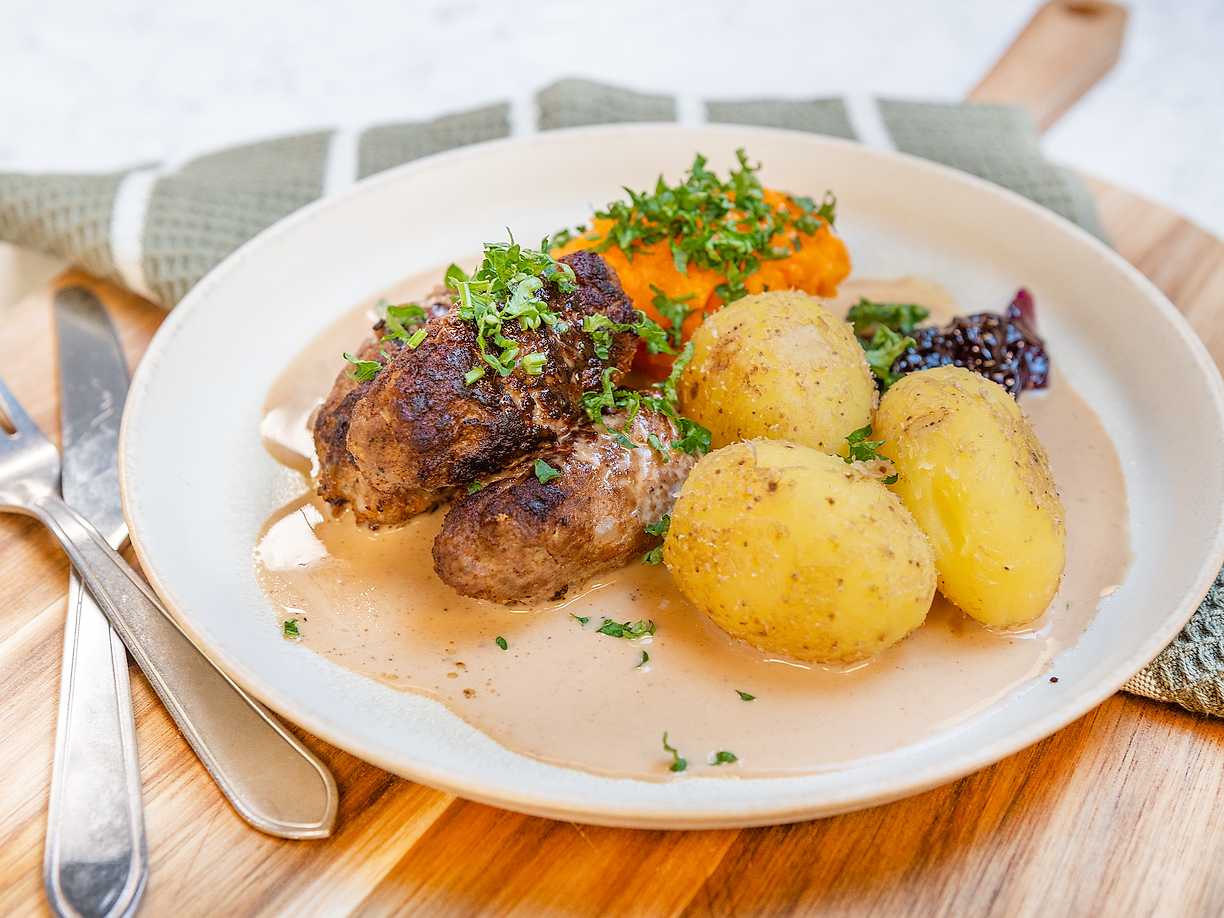 Kurt Weids oxrullader i gräddsås med pressad potatis