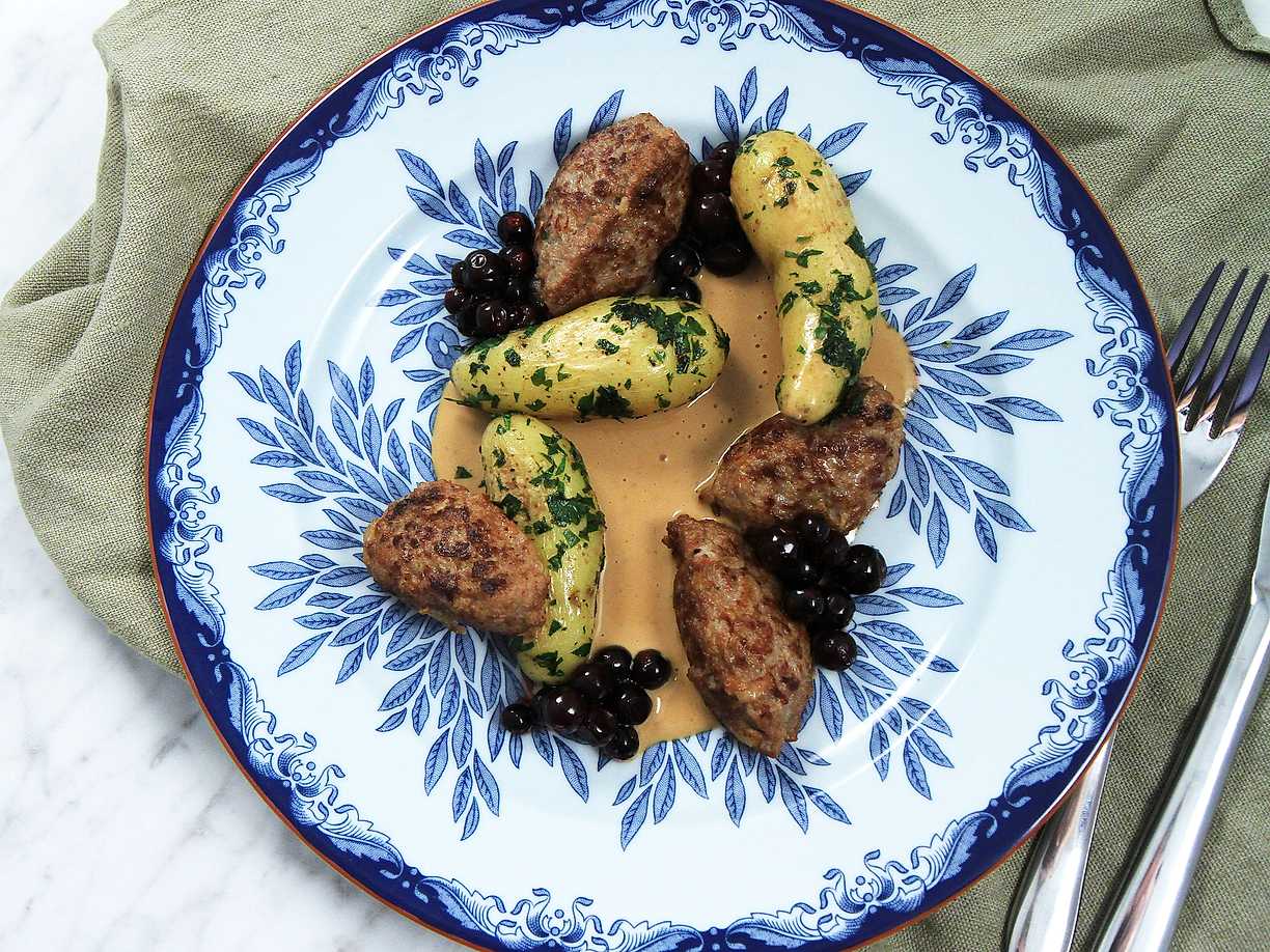 Hjortköttbullar med gräddsås av messmör och lingon