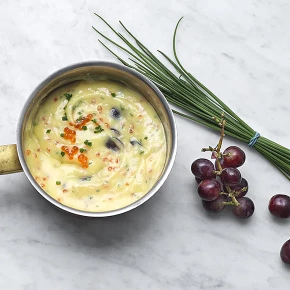 Beurre Blanc med druvor, regnbågsrom och gräslök