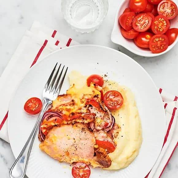 Mozzarellagratinerad fläskfilé med ljummen potatissallad
