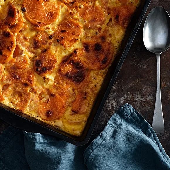 Krämig potatisgratäng med jordärtskocka och parmesan