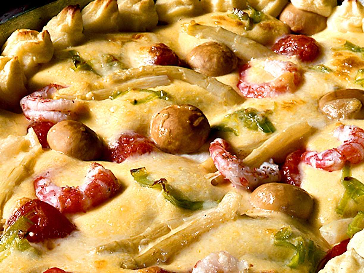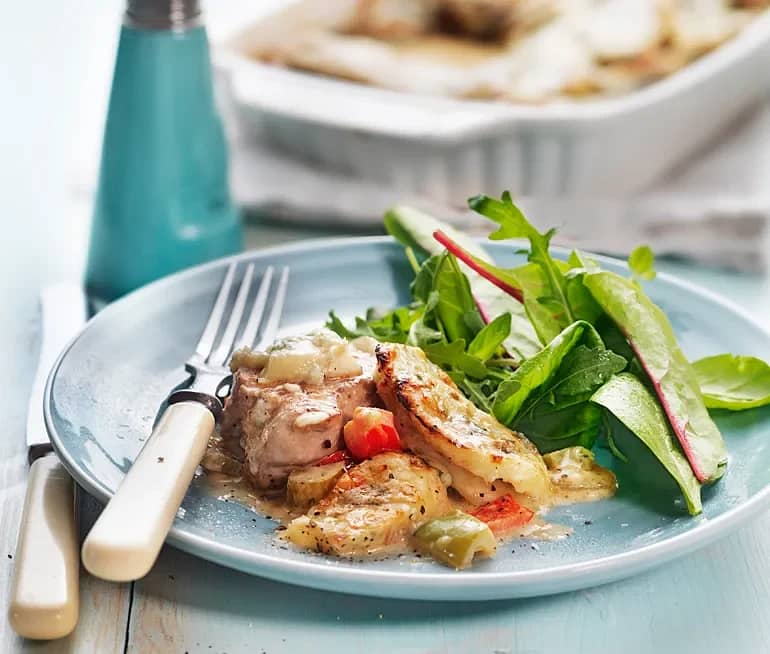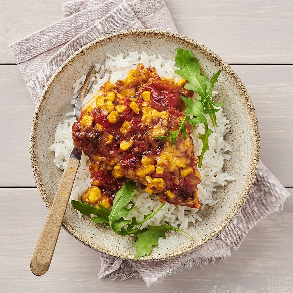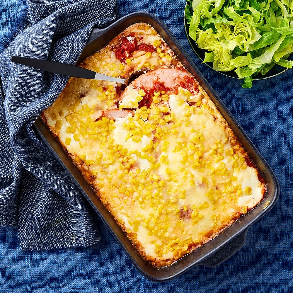 makrill- och fullkornspastagratäng m. champinjoner och majs