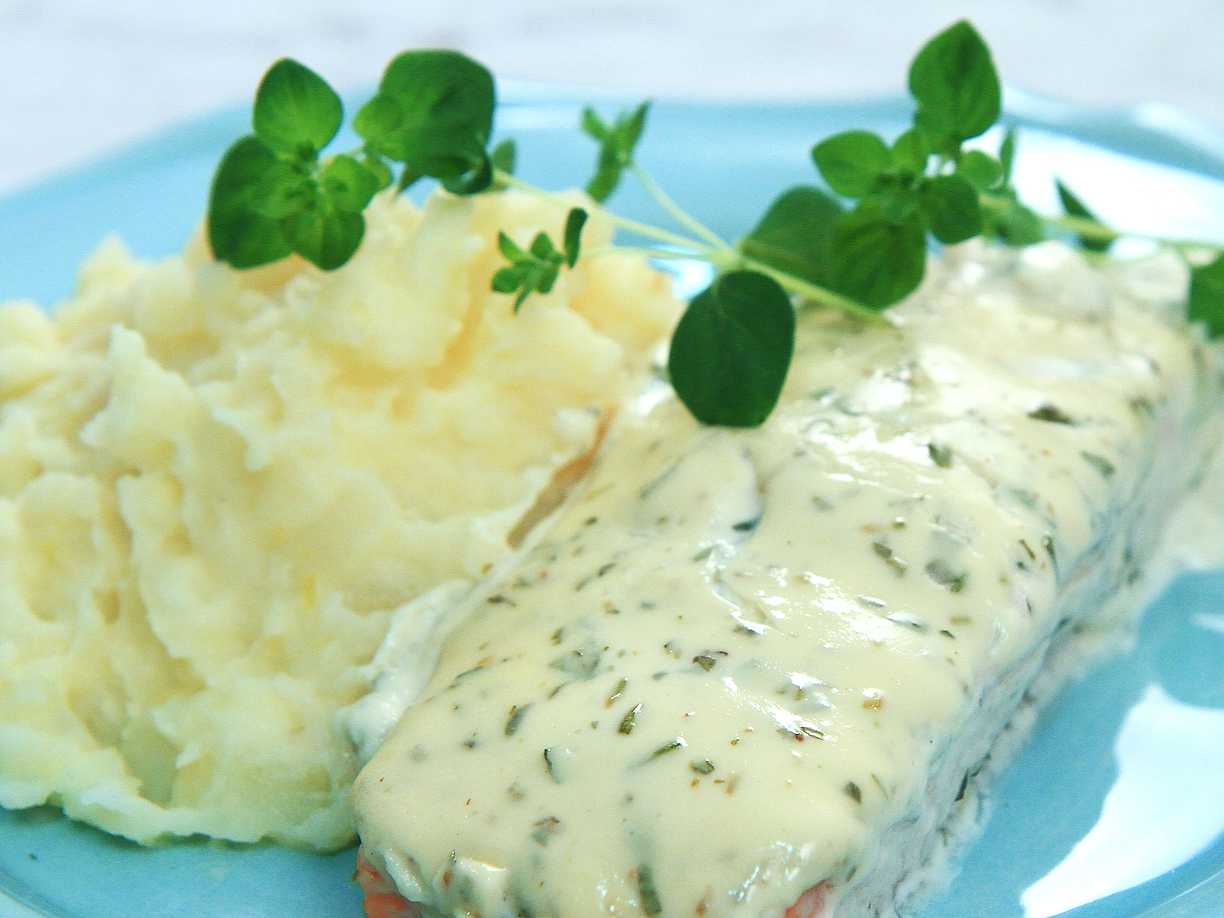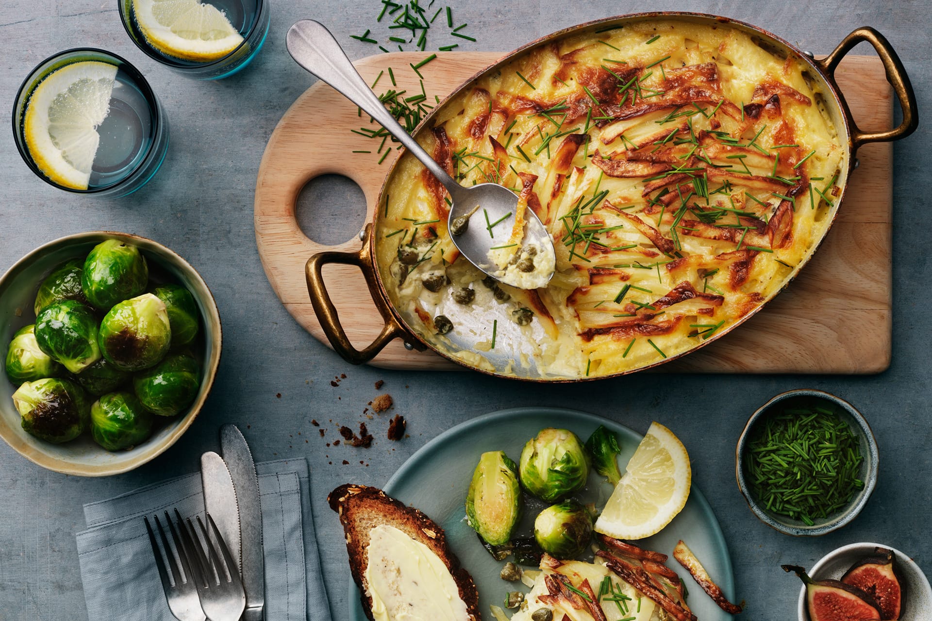 Ugnsgratinerad lax med västerbottenssås och färskpotatis