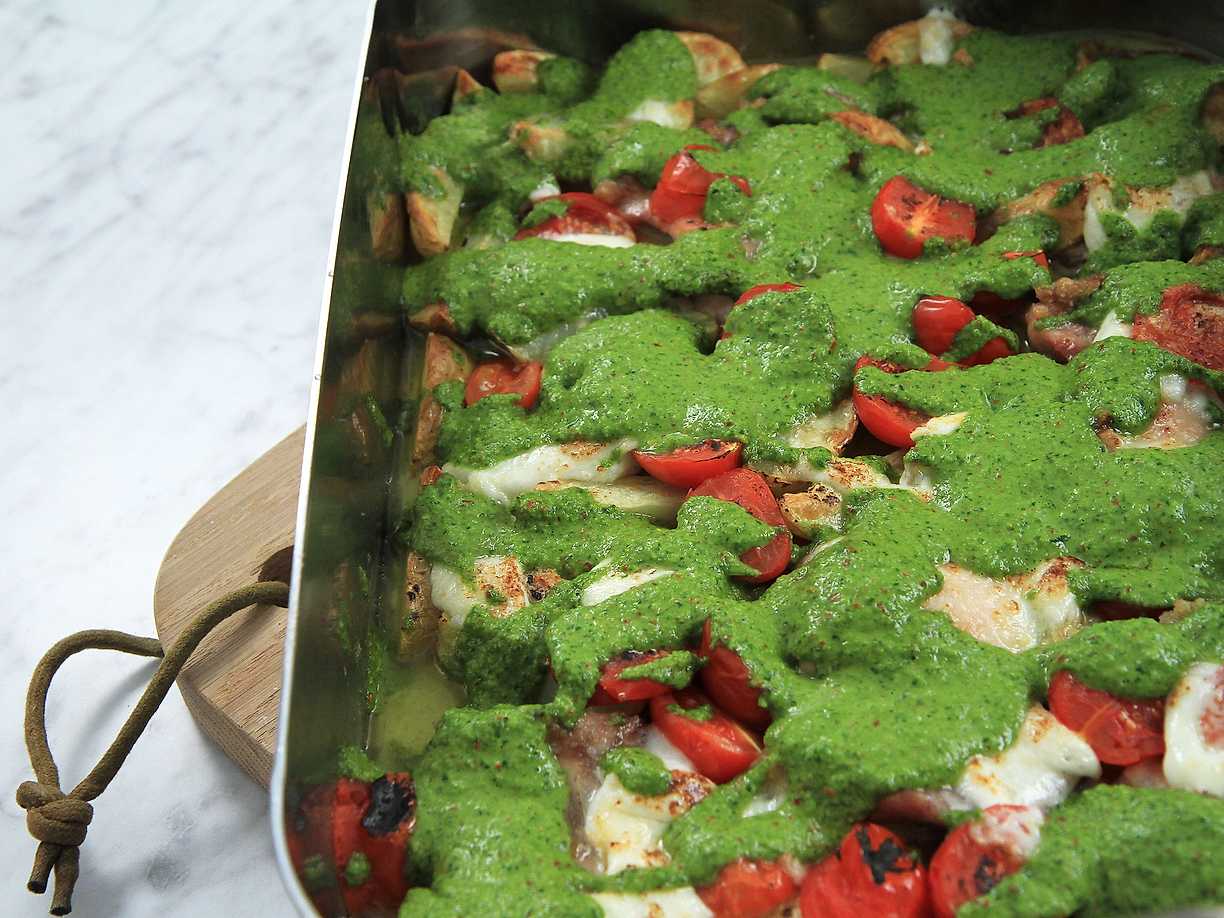 Ugnsgratinerad kyckling med chimichurri och mozzarella