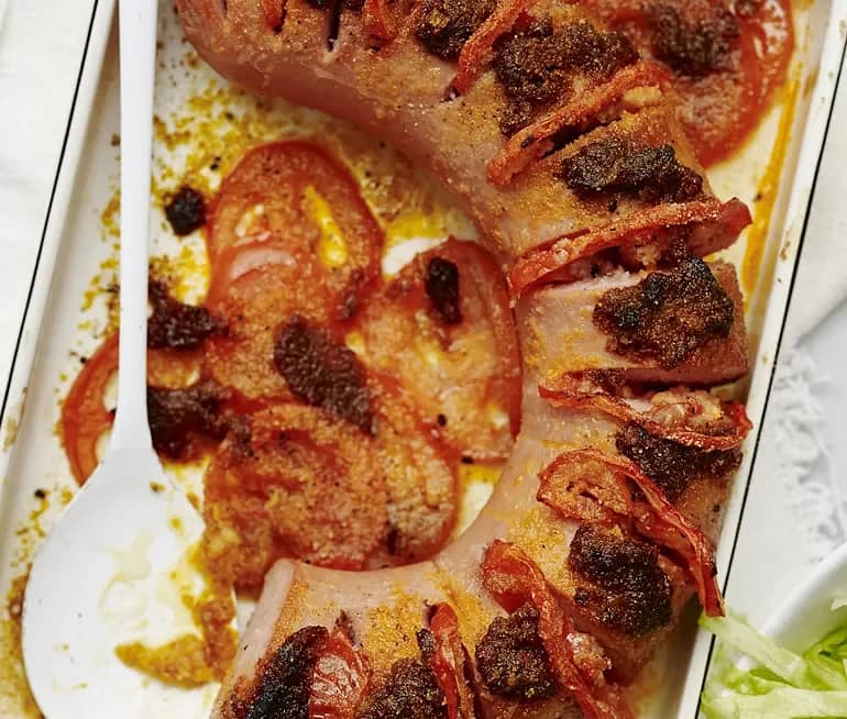 Gratinerad fläskfilé med paprika och chili
