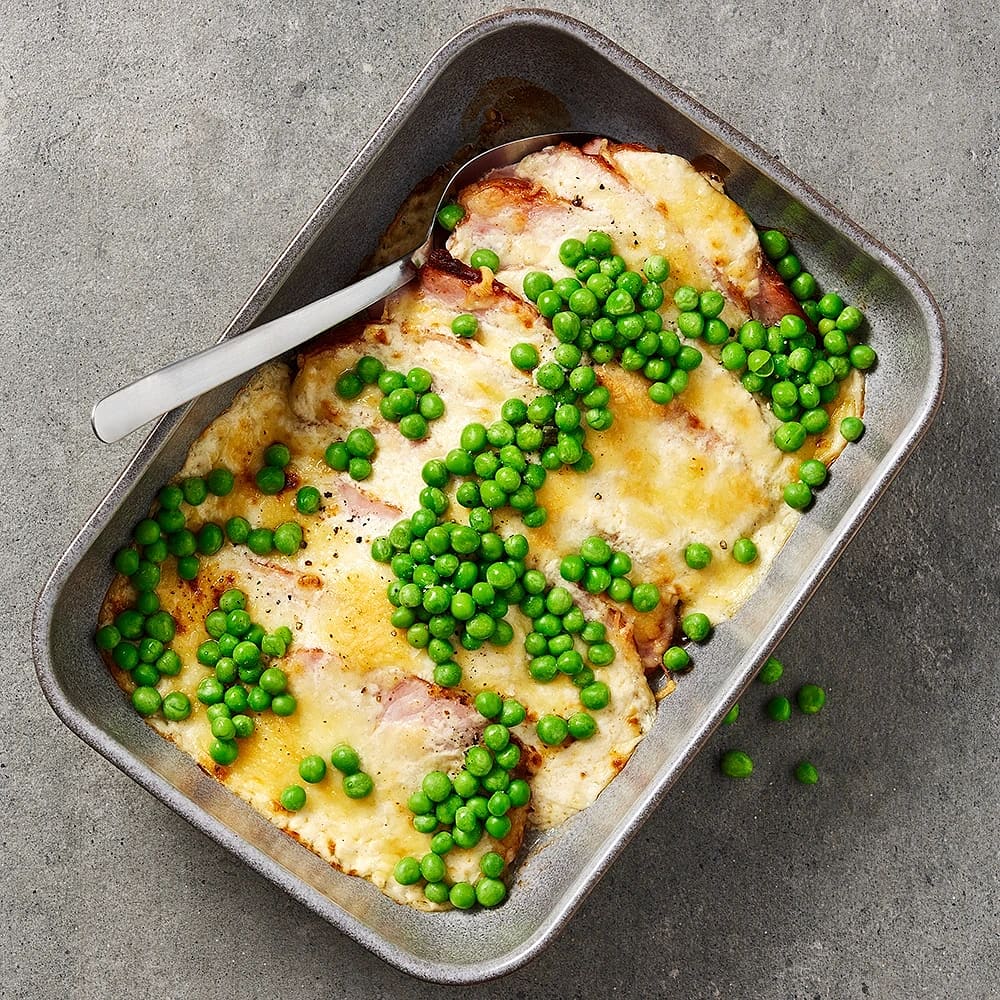 Kassler och pepparrotsgratäng