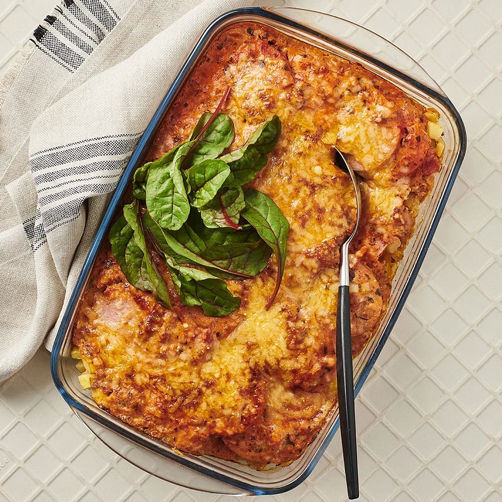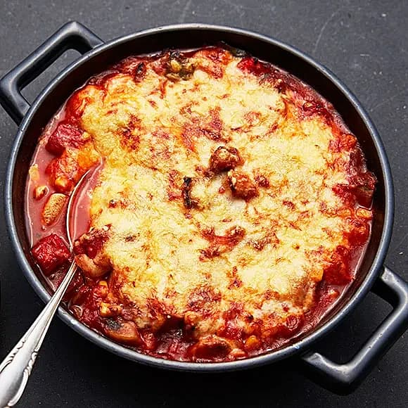 Ugnsgratinerad korv i tomatsås