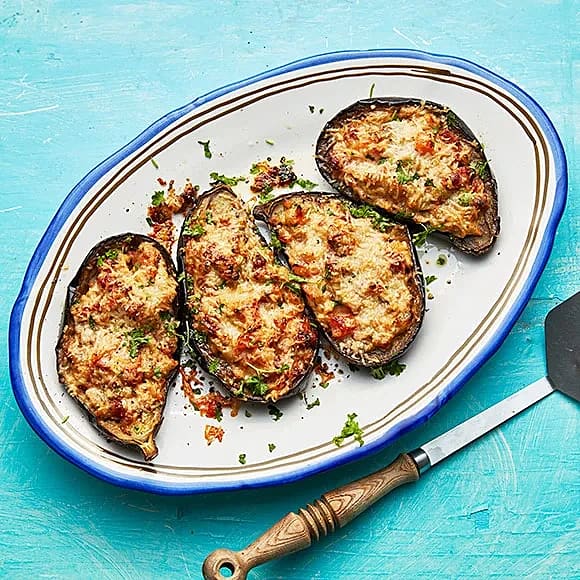Fylld gratinerad aubergine