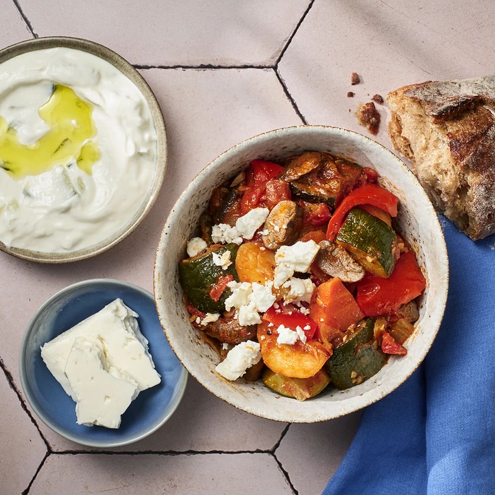 Grekisk kyckling med grönsaksgryn och tzatziki