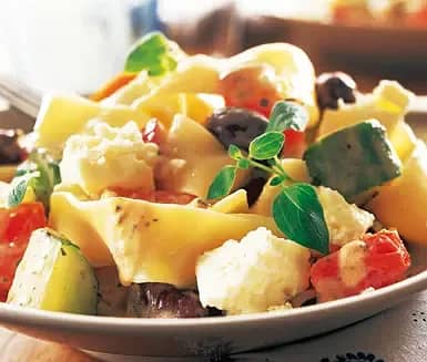 Grekisk pasta med fetaost, oliver och färsk oregano