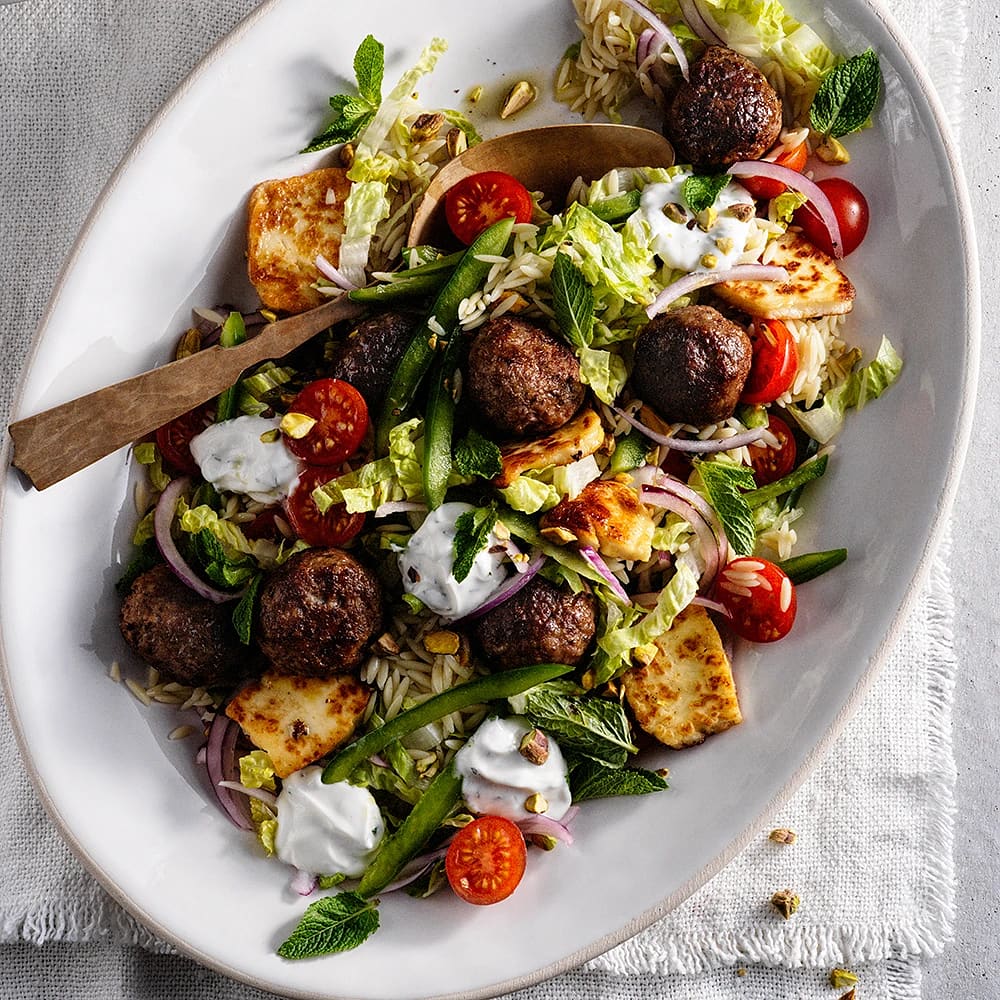 Grekiska lammköttbullar med fetasallad och tzatziki