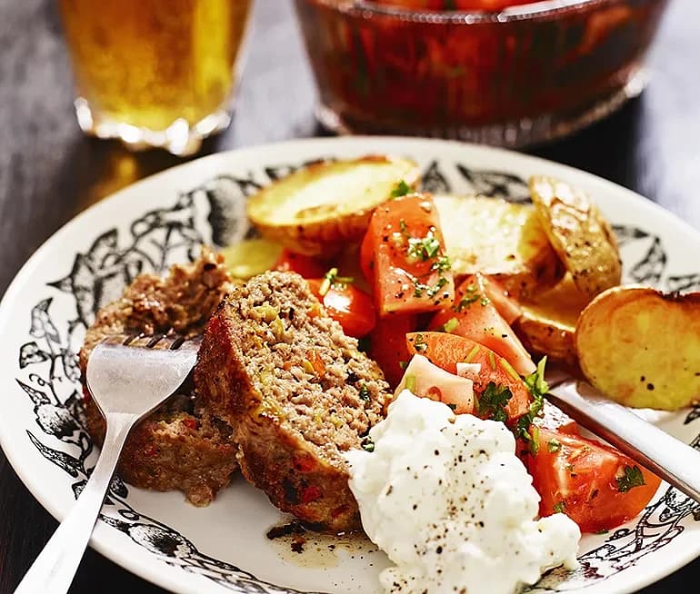 Grekisk färslimpa med gurksallad och fetayoghurt