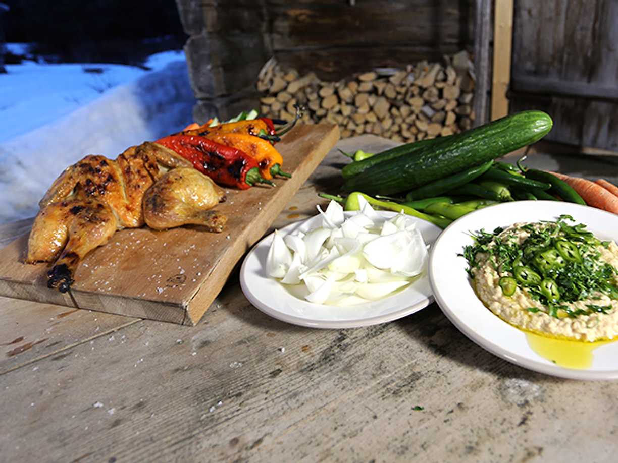 Grillad kyckling med varm hummusdip