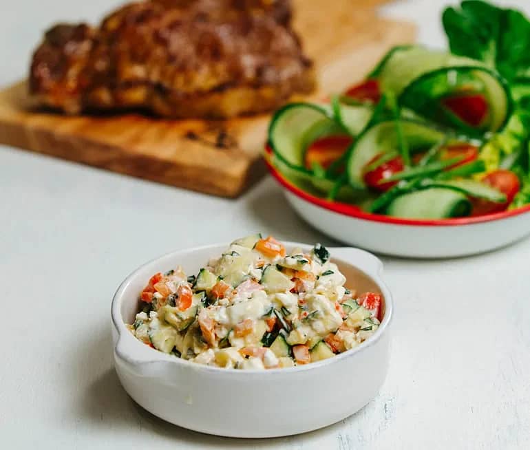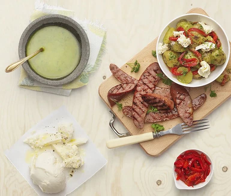 Potatissallad med mozzarella och grillad paprika
