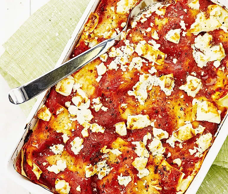 Lasagne med linser och grillad paprika