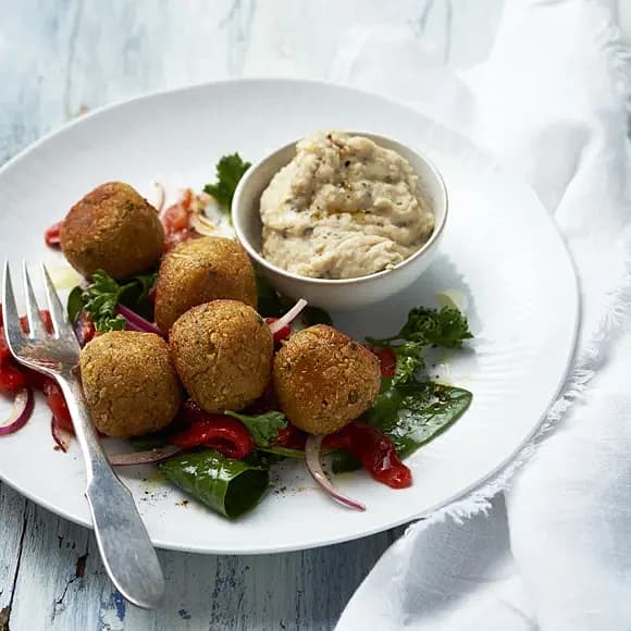 Falafel med bönröra och grillad paprika