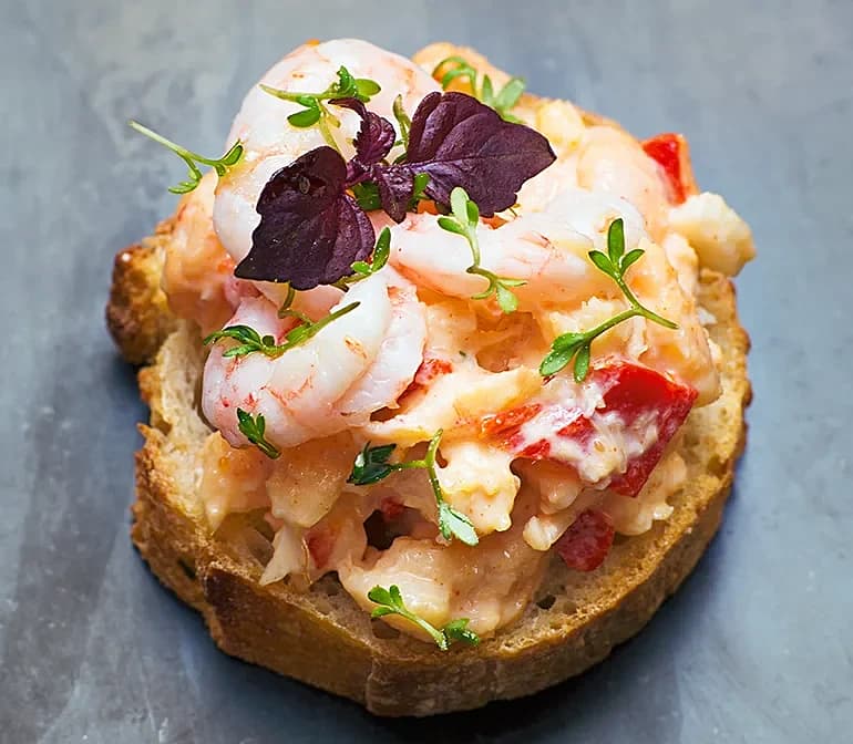 Havssallad med grillad paprika på toast