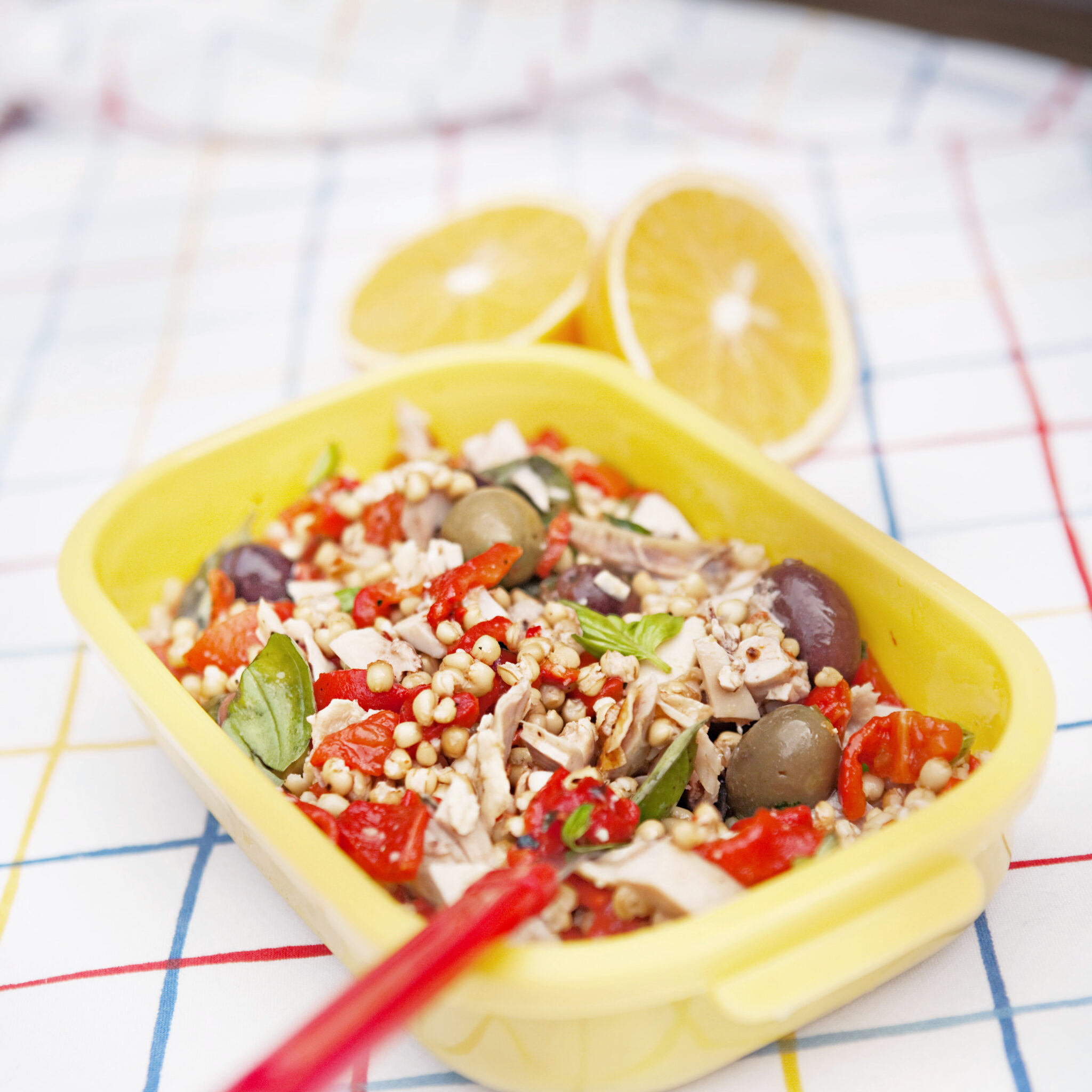 Kycklingsallad med matvete och grillad paprika