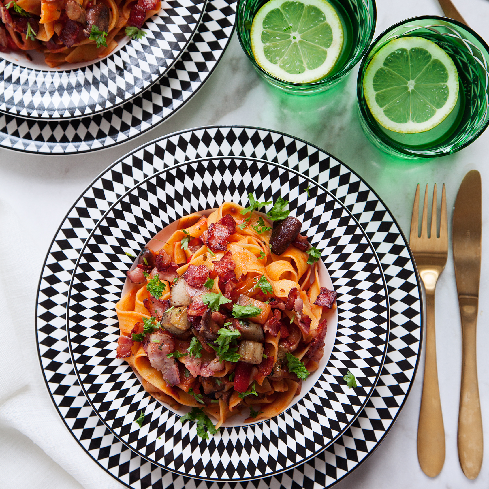 Pasta med shiitake och grillad paprika