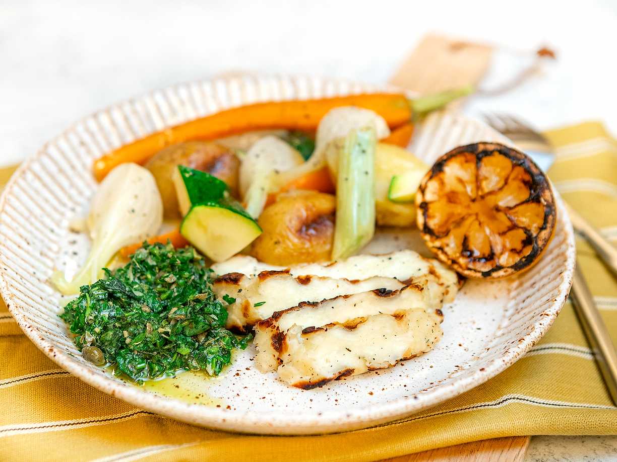Grillad halloumi och aubergine