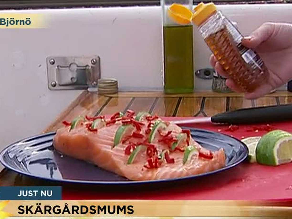 Ugnsbakad lax med grillad broccoli och parmesankräm
