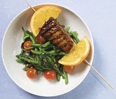 Grillspett med lax, ingefära och lime