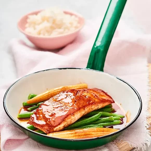 Tapenadetorsk med vitlöksfrästa gröna bönor
